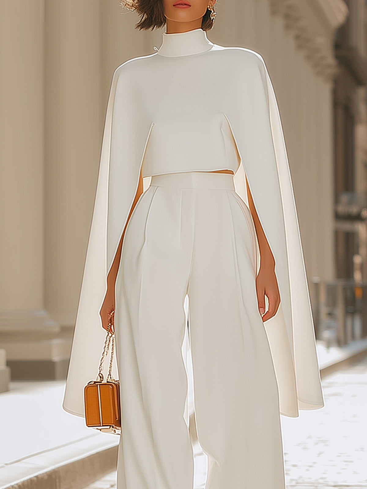 White High-neck Cape Suit