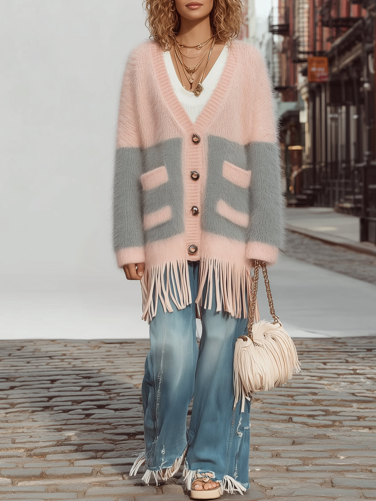 Perfect for casual occasions like everyday outings and coffee dates, this piece exudes a gentle and sweet charm. Its unique tassels and patchwork design add a touch of personality and style, making it a sure-fire street style statement.
