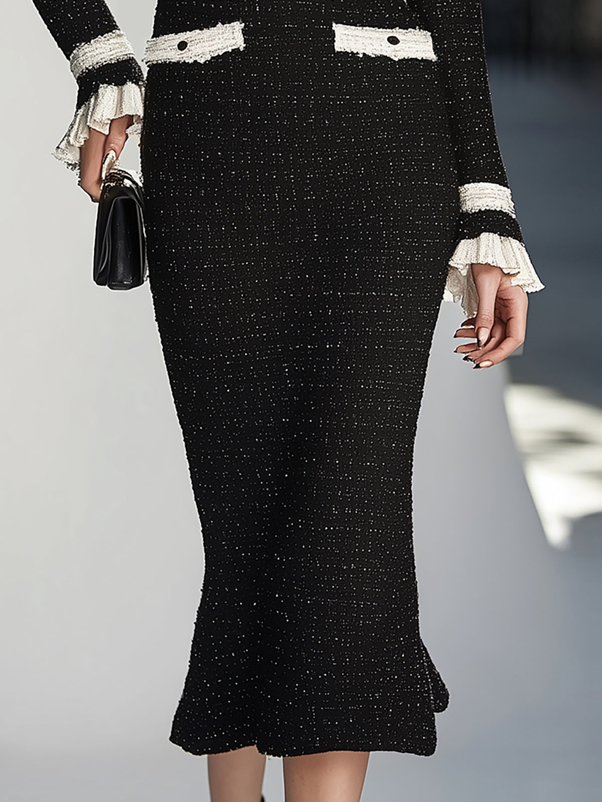 Make a statement with the Chic Black and White Tweed Slim Dress—a modern, sophisticated design crafted for the confident and stylish woman.