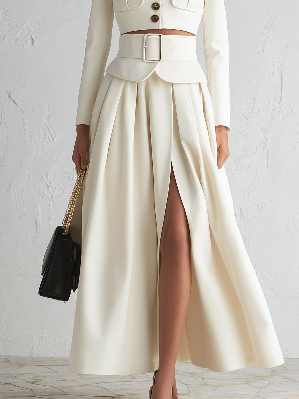 The unique design and eye-catching elements make this outfit perfect for fashion shows, brand launches, and other trendy events, showcasing a keen sense of style.