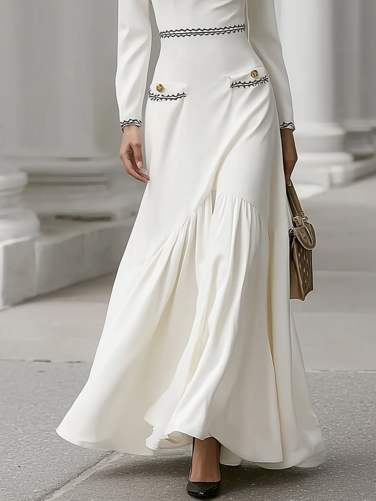 The overall slim fit and ankle-length skirt are elegant and graceful, showcasing a woman's graceful and graceful temperament.