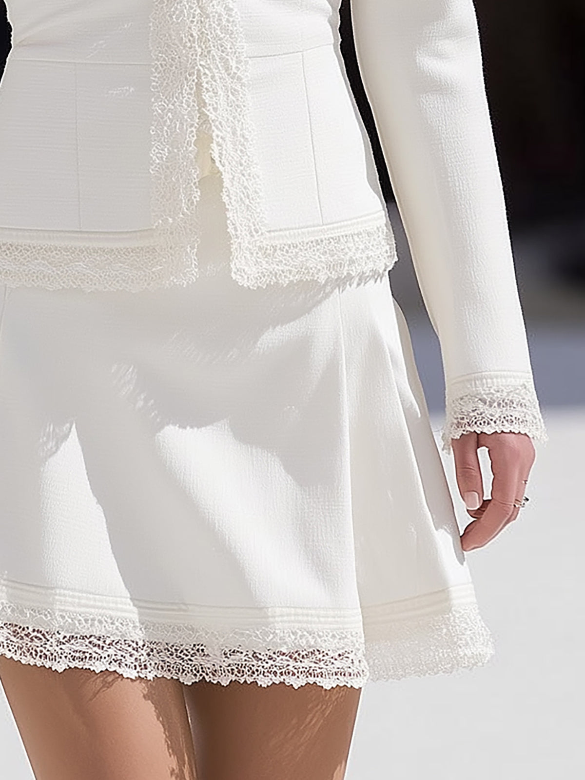 • White Suit Skirt With White Lace Trim And Neckpiece