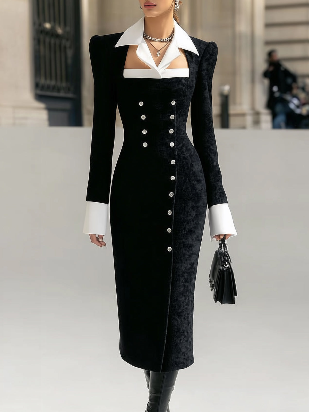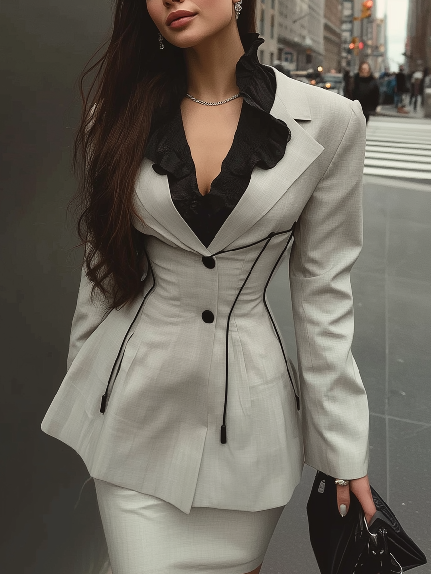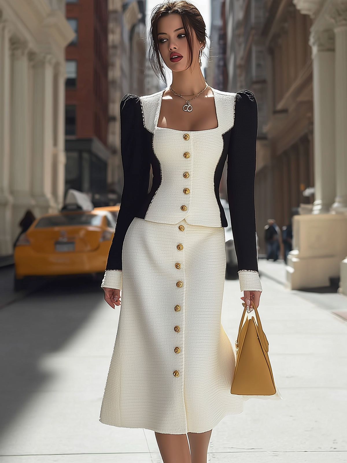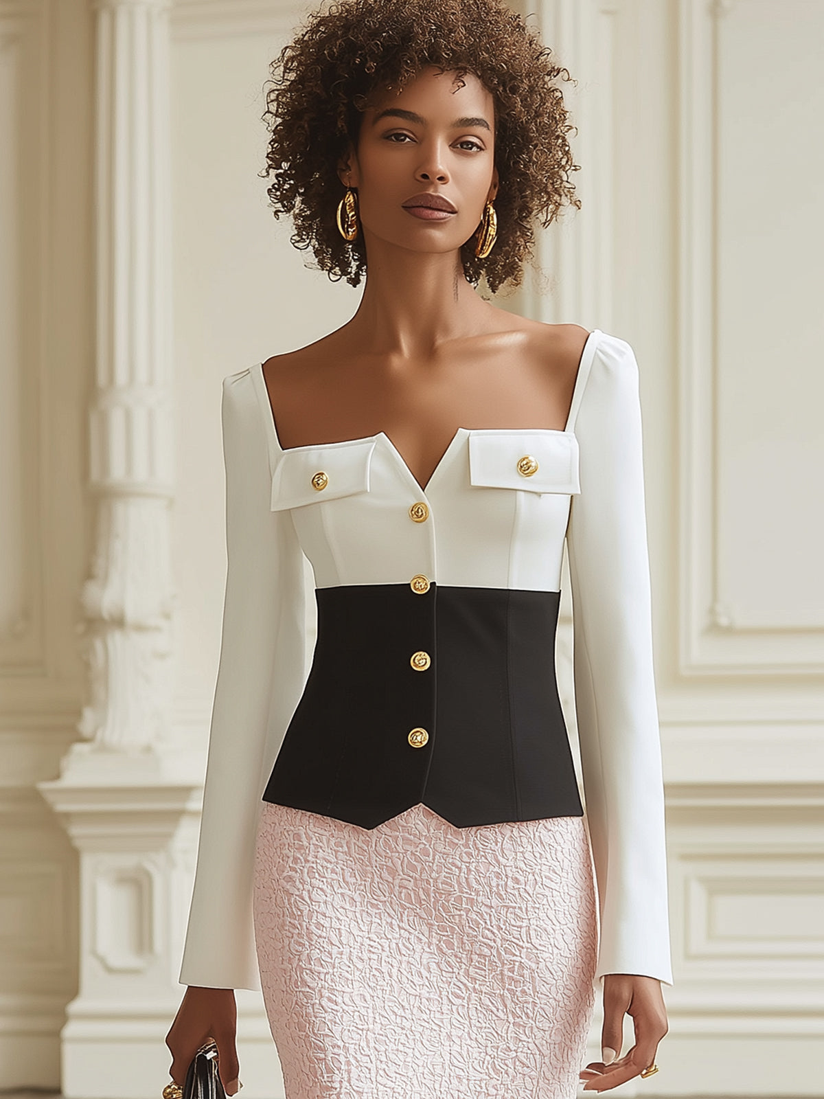 Black And White Contrast Square Neck Slim-fit Long-sleeved Blazer