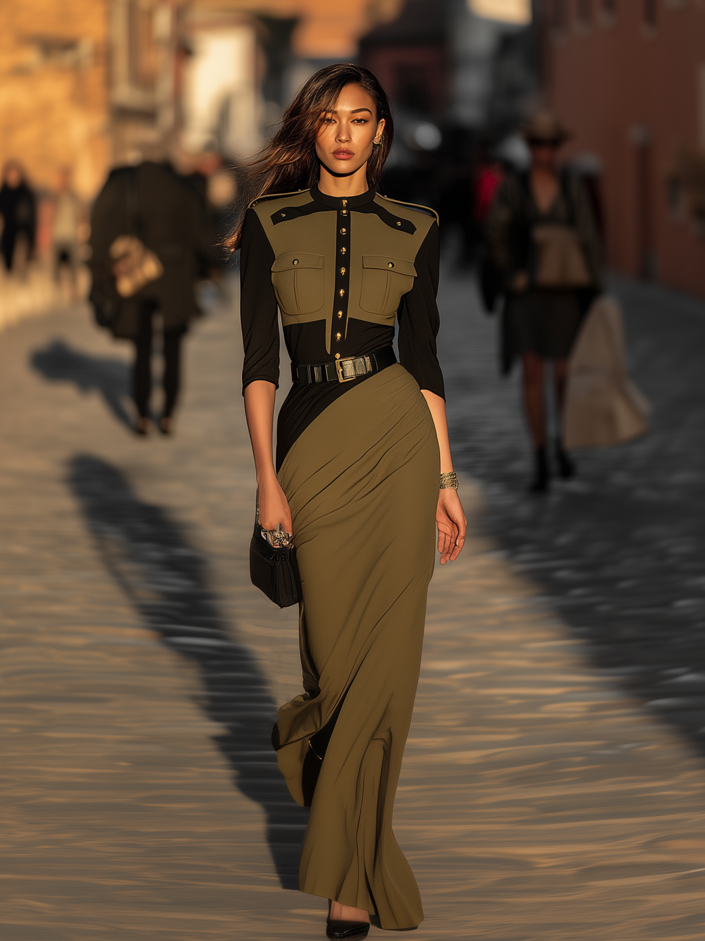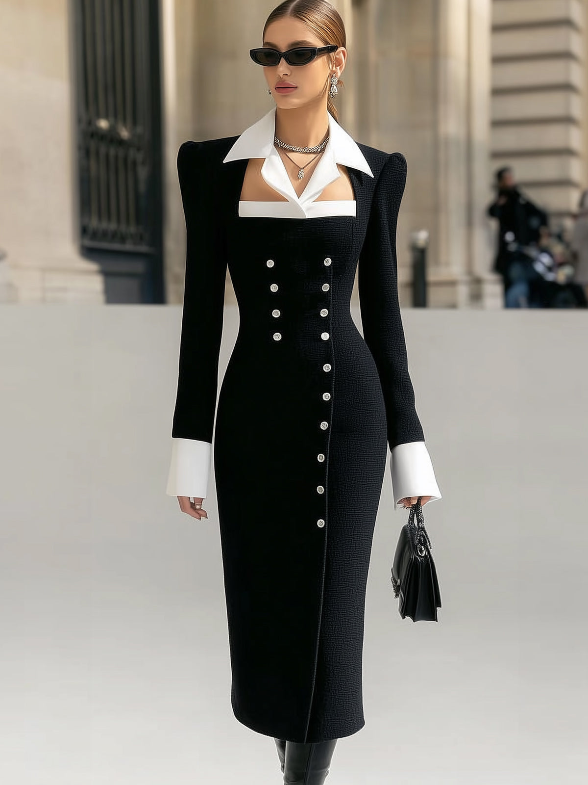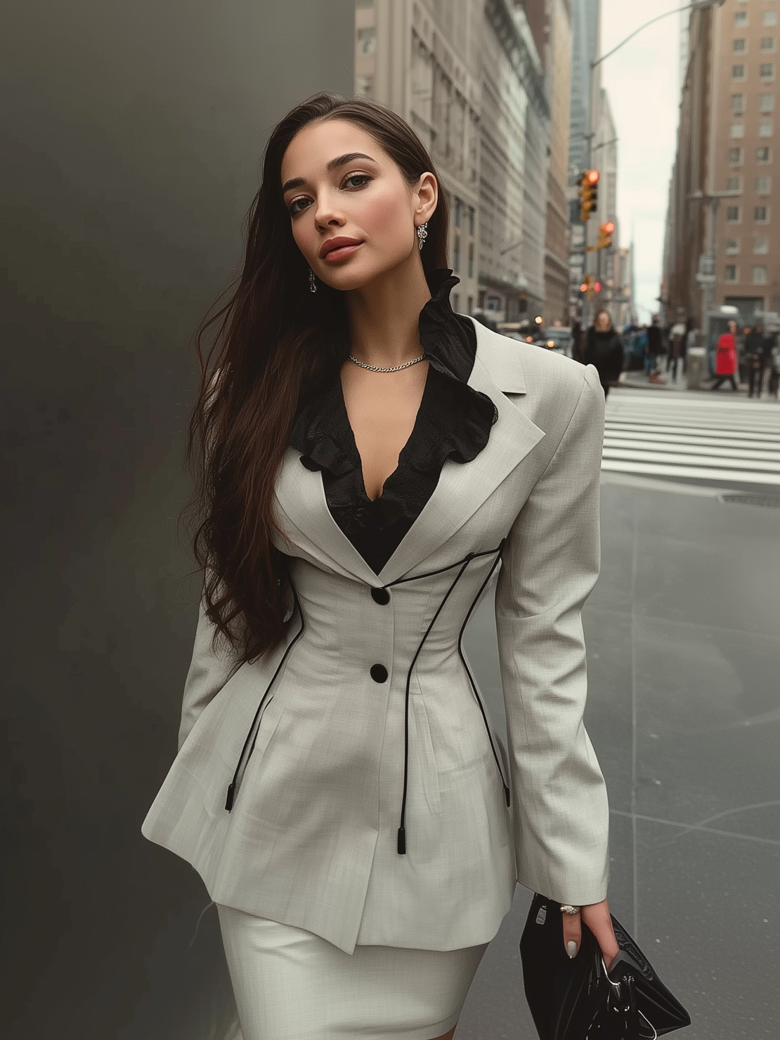 Black And White Contrast Square Neck Slim-fit Long-sleeved Blazer