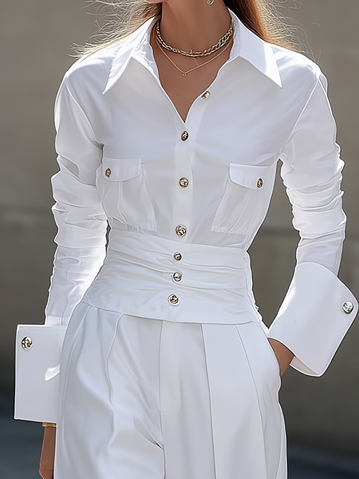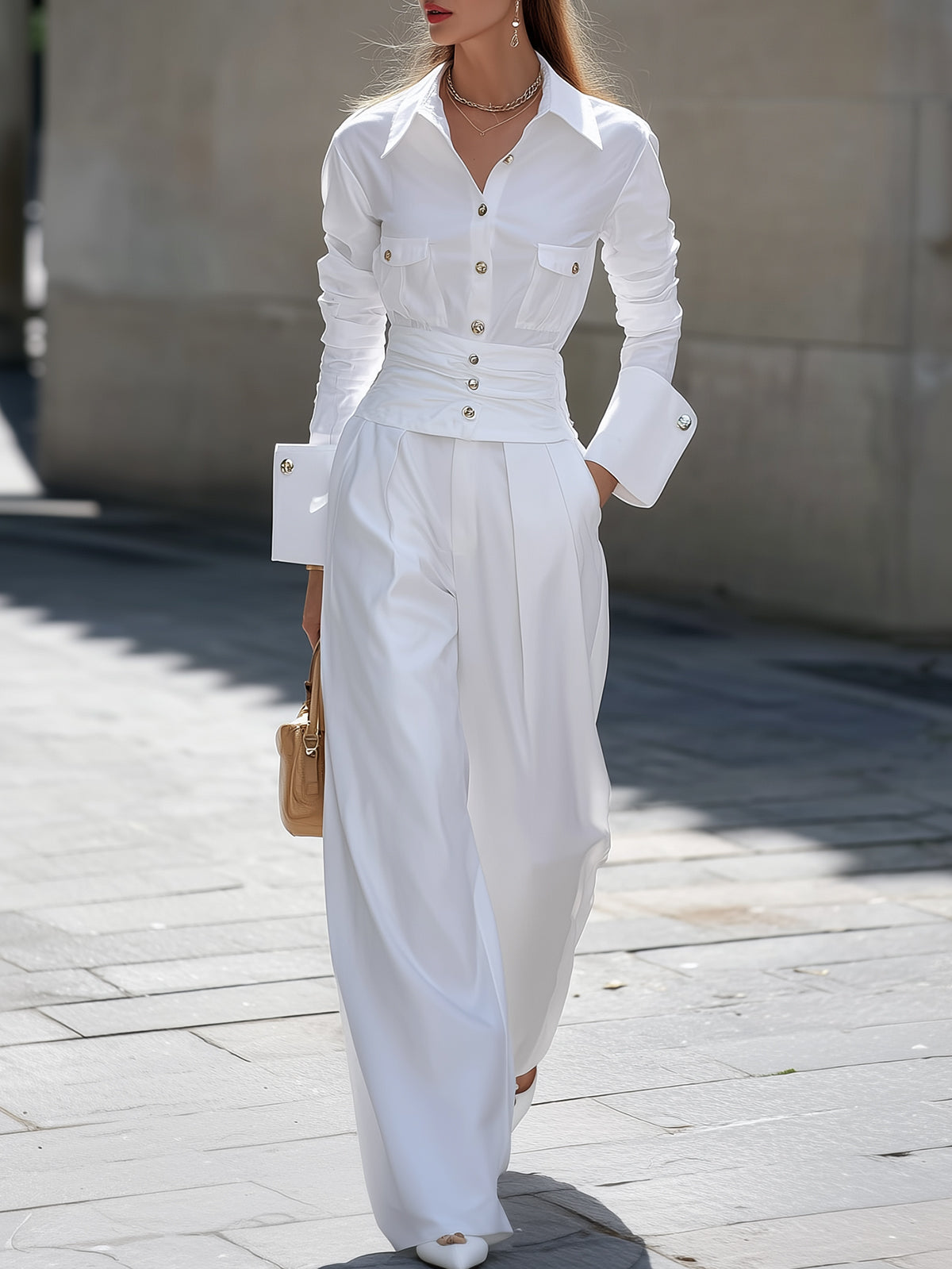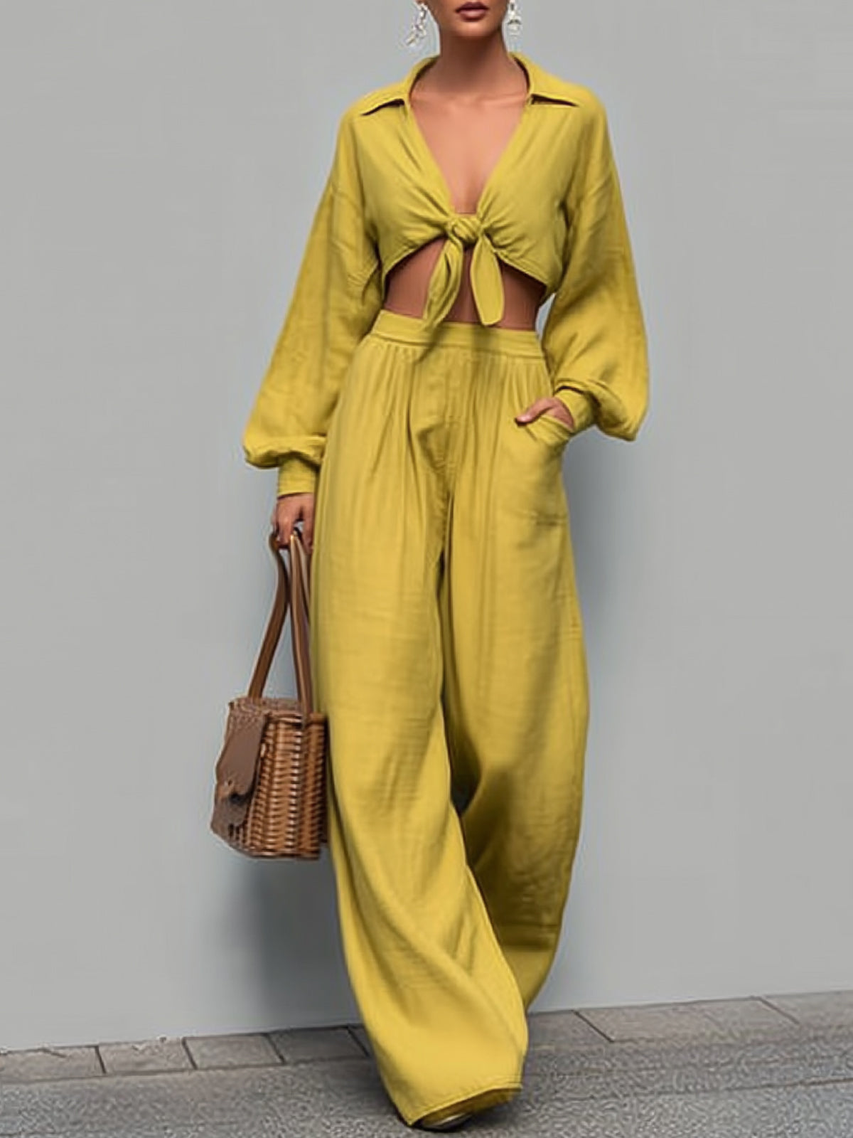 Sophisticated Light Khaki Wide - Collar Pant Set