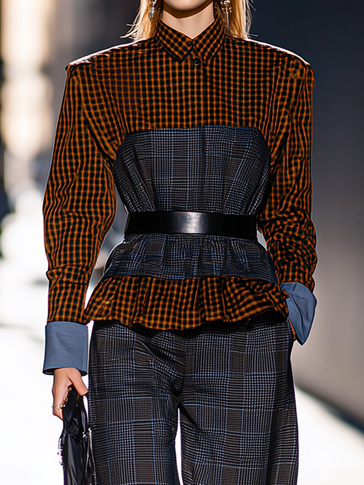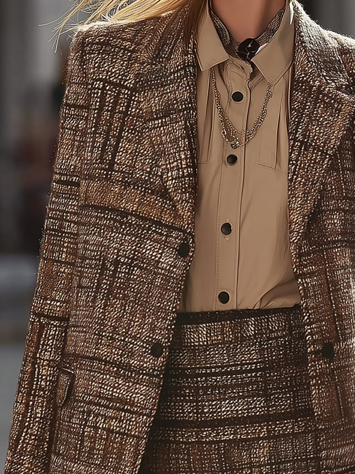 Plaid Mix Brown Grey Trouser Outfit (Without Belt)