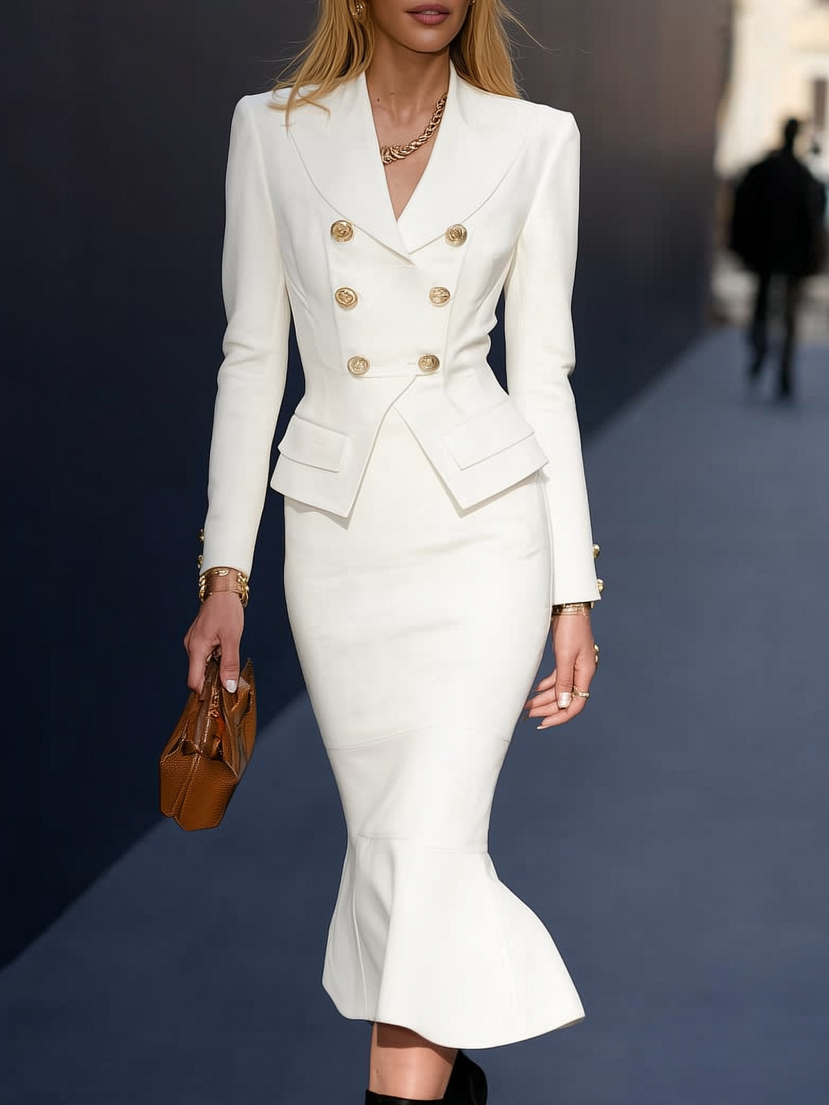 Off - Shoulder White Peplum Top With Mermaid Skirt Set