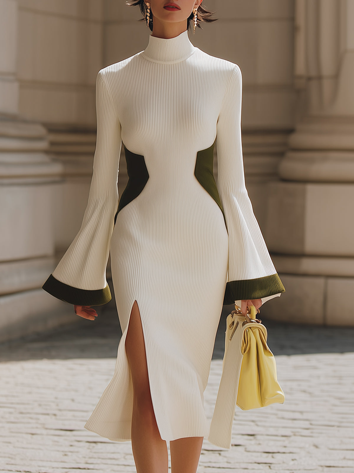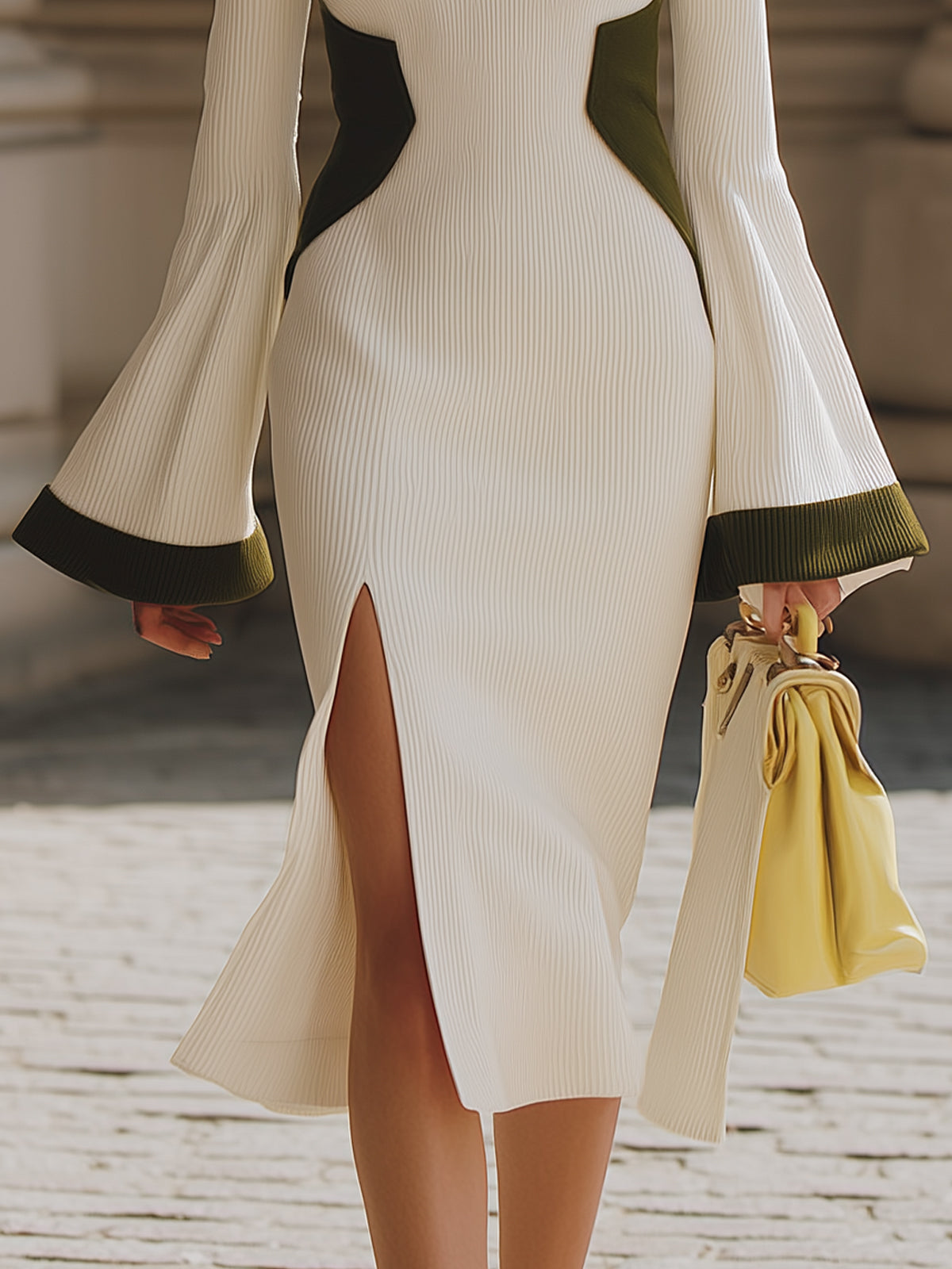 Knitted Black And White Contrast Off-shoulder Bow-knot Slim Dress