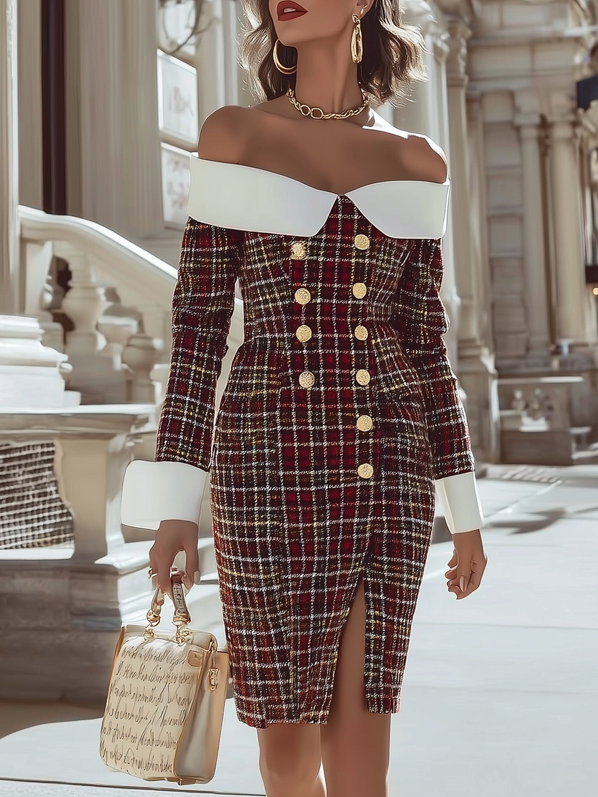 Retro Plaid One-shoulder Slim Dress