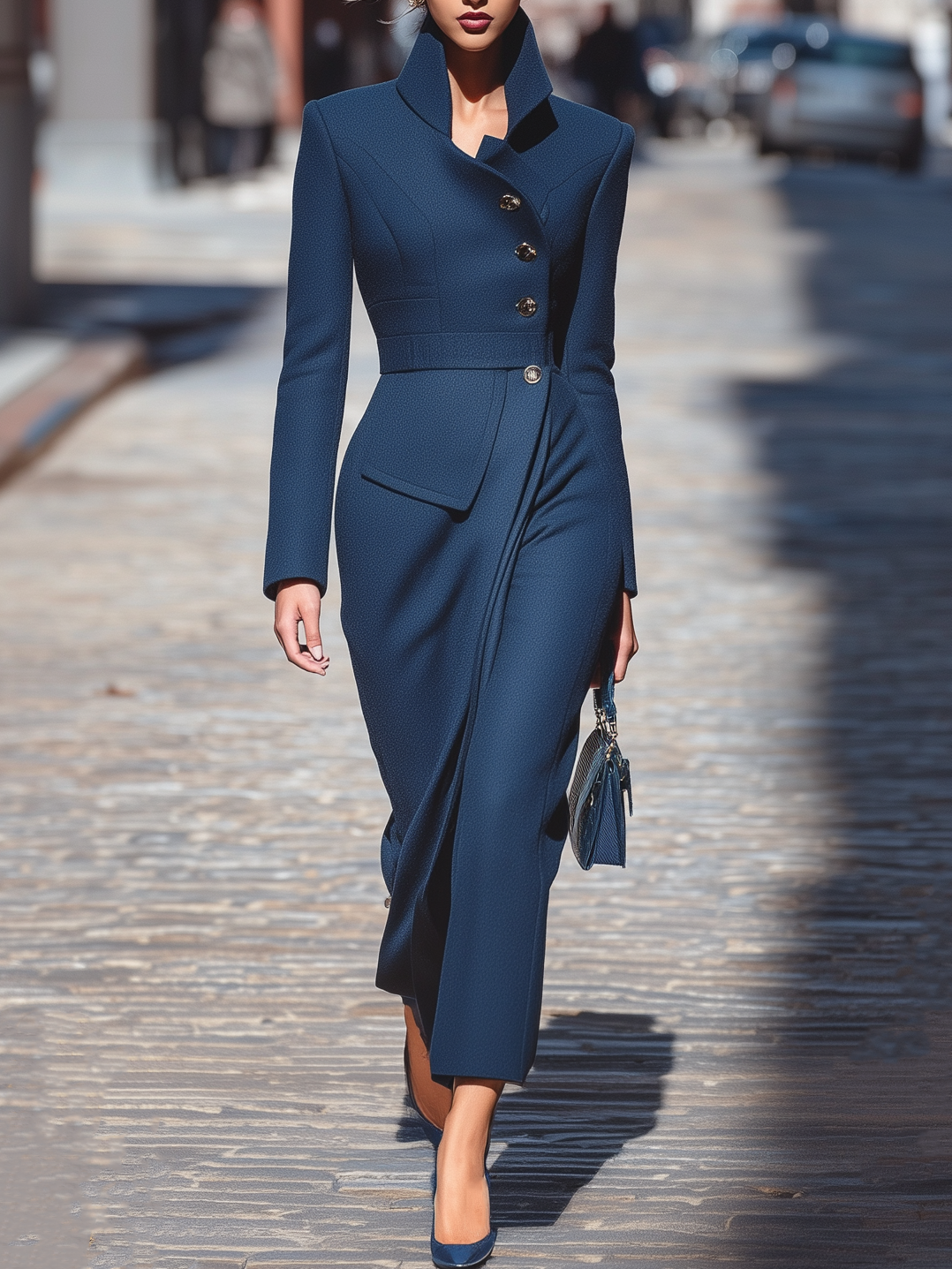 Navy Blue Tailored Long Blazer Dress