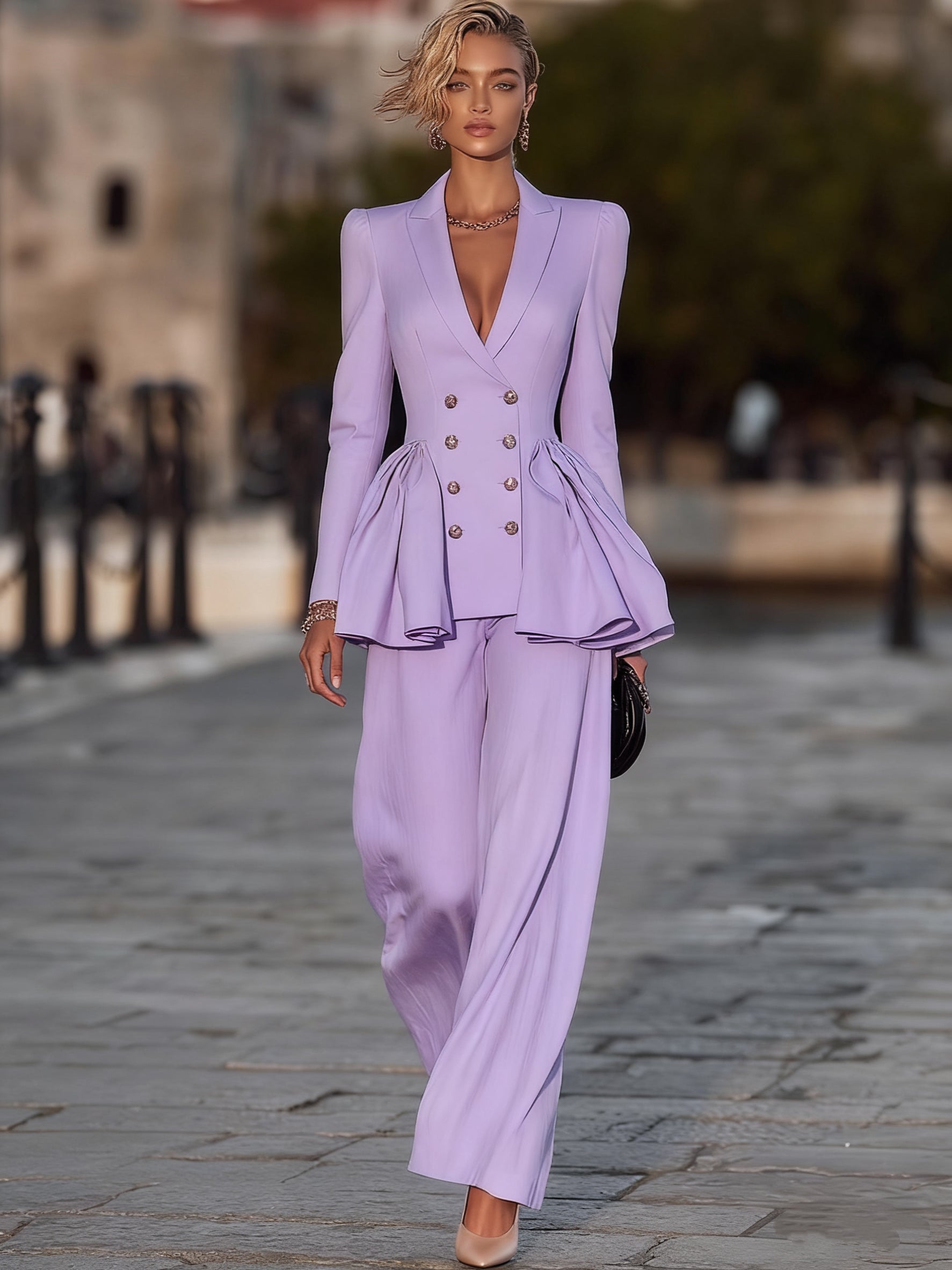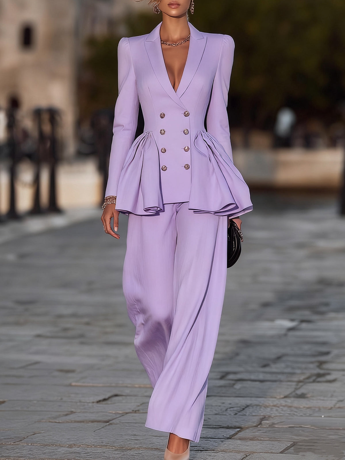 Lavender Peplum Suit With Wide - Leg Pants