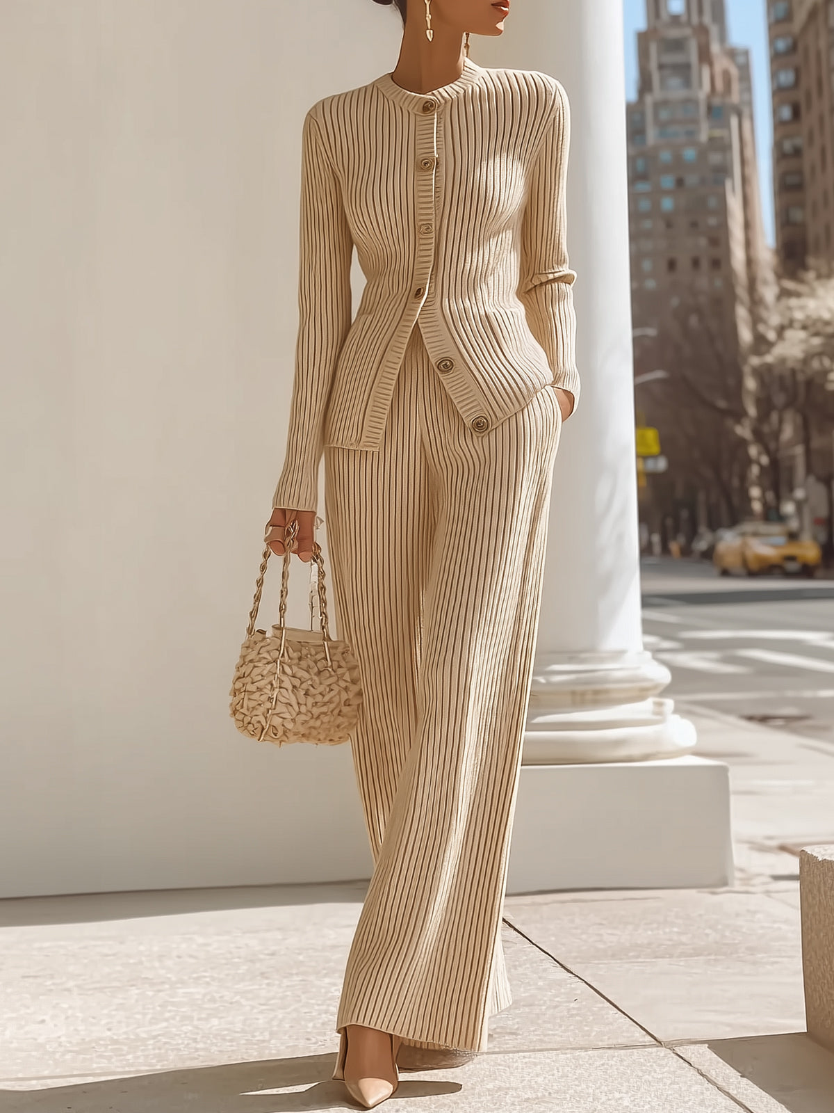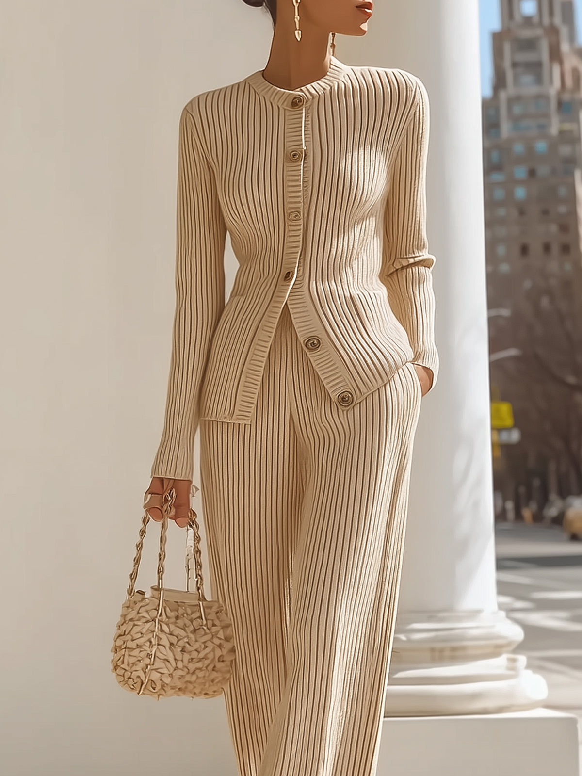 Apricot Knitted Elegant Set