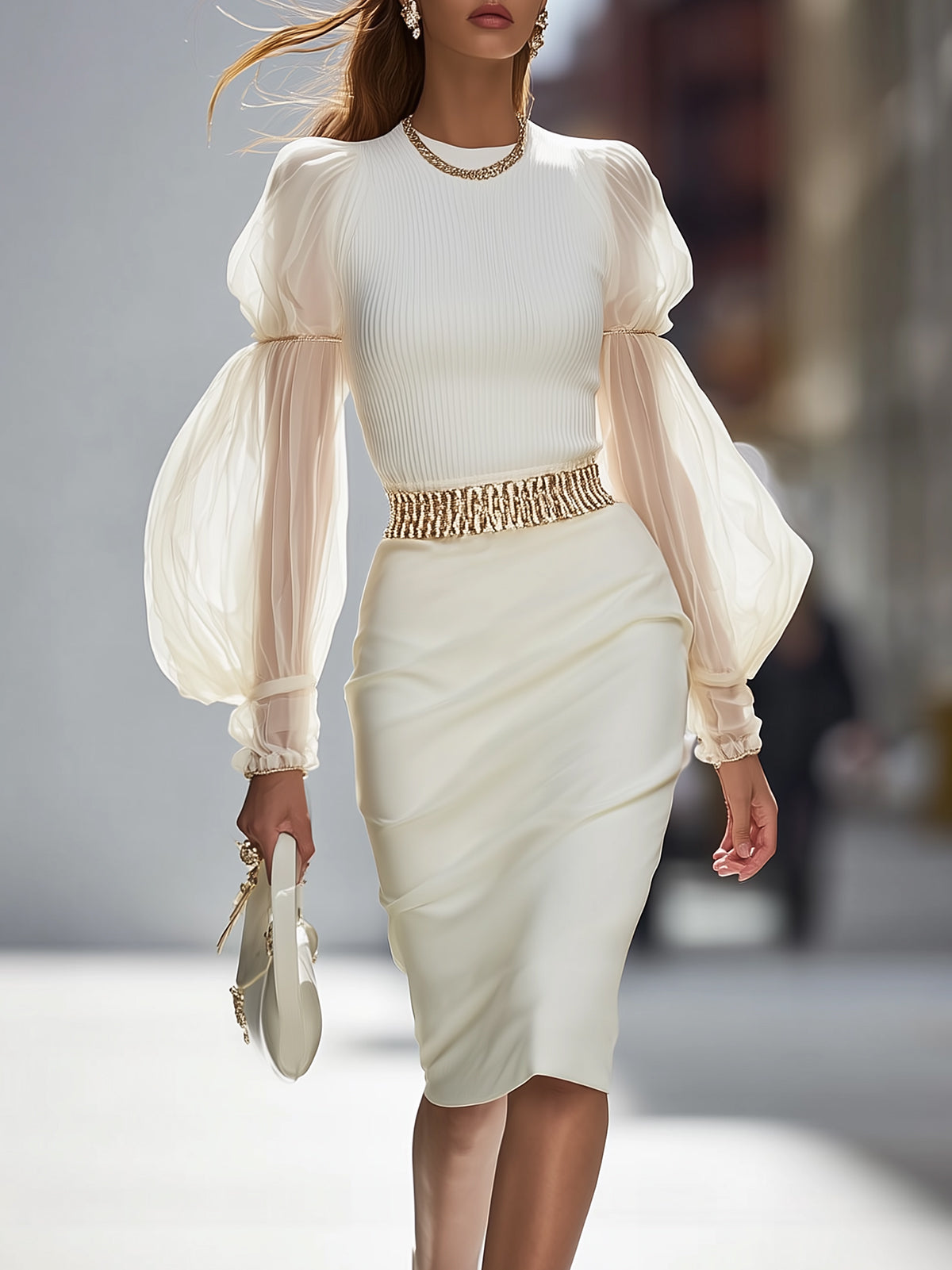 Creamy White Textured Lantern Sleeve Set