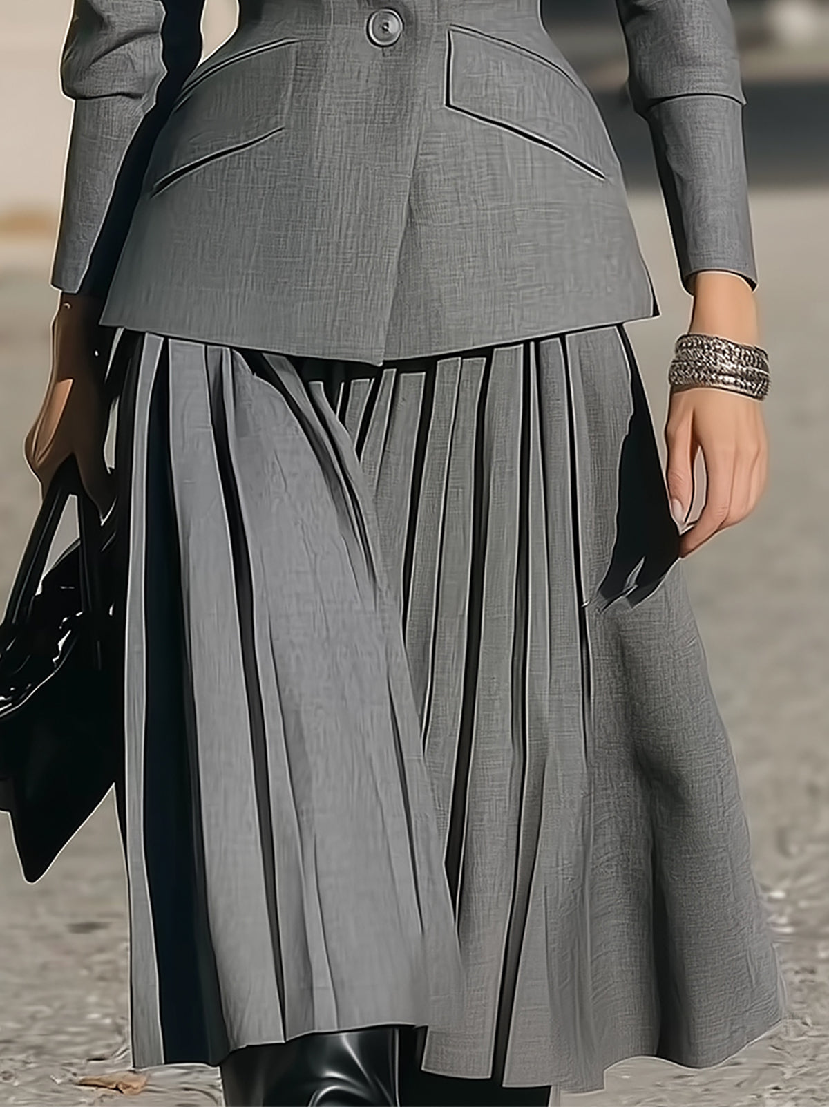 Make a statement with the Elegant Grey Puff-Sleeve Pleated Skirt Outfit—a timeless design that blends sophistication with modern femininity.