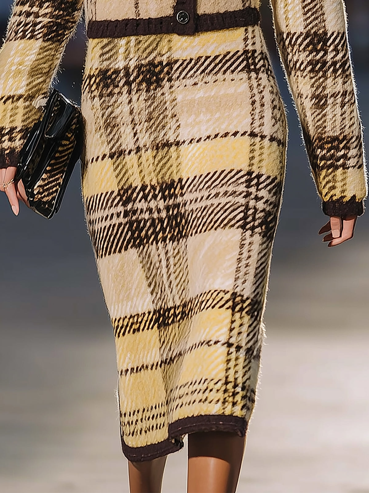 • Material: Soft plush- knit blend fabric in light yellow with contrasting brown checks, offering warmth, comfort, and refined texture