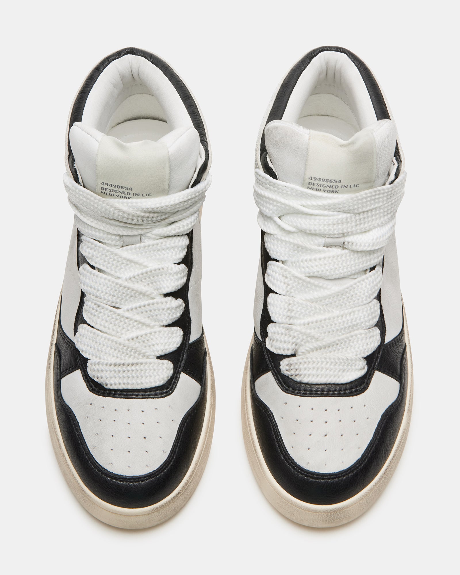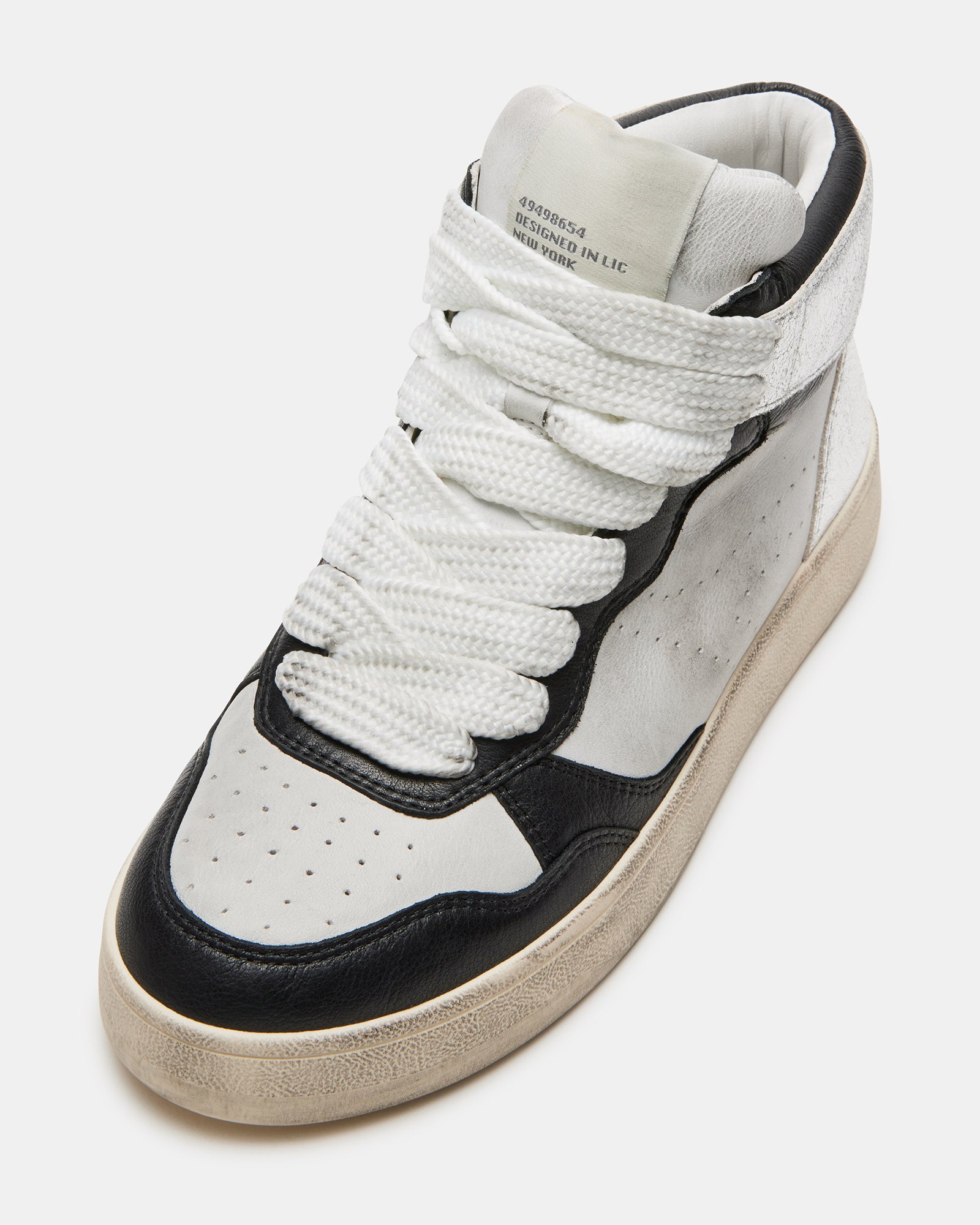 The ENDLESS high top finishes a structured flatform design with allover distressing and extra-wide laces.